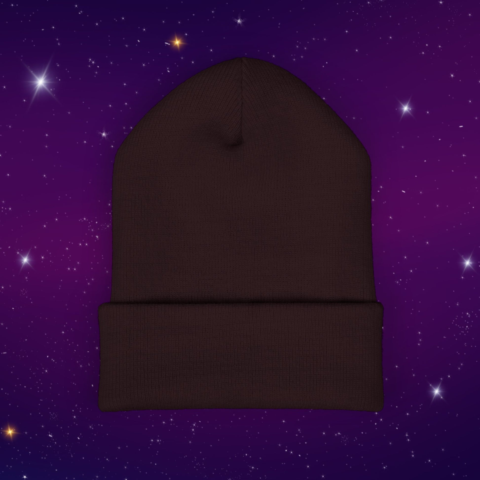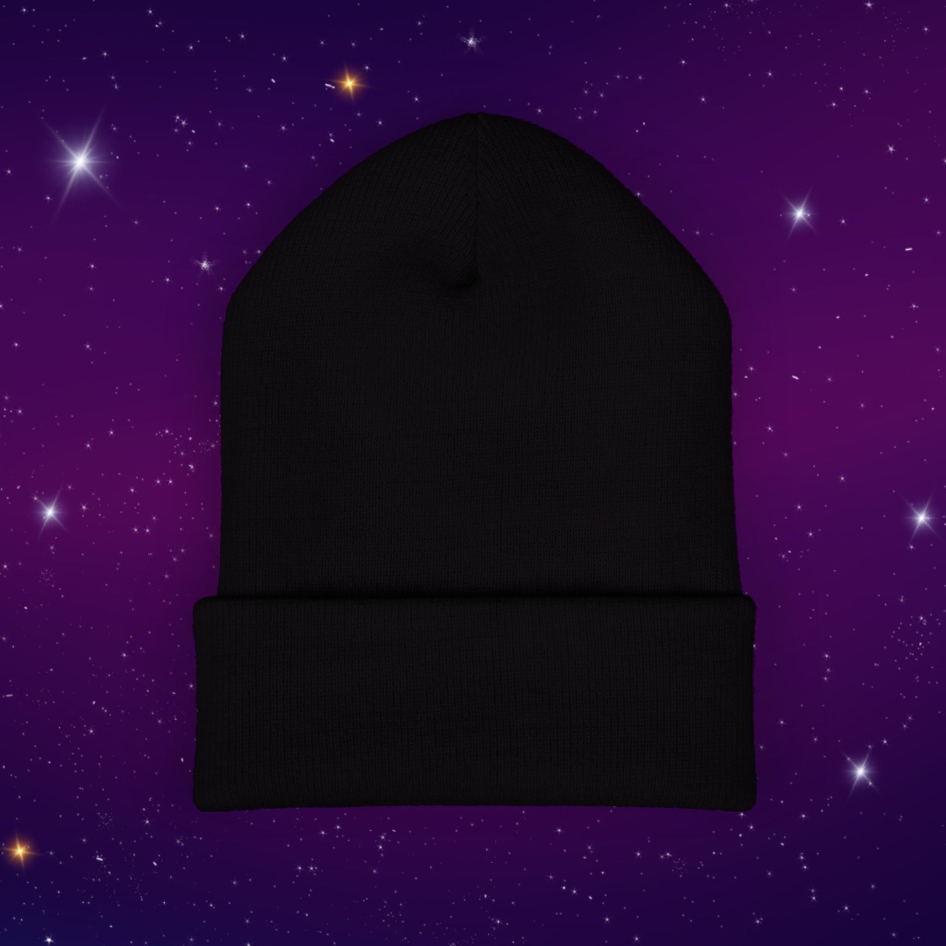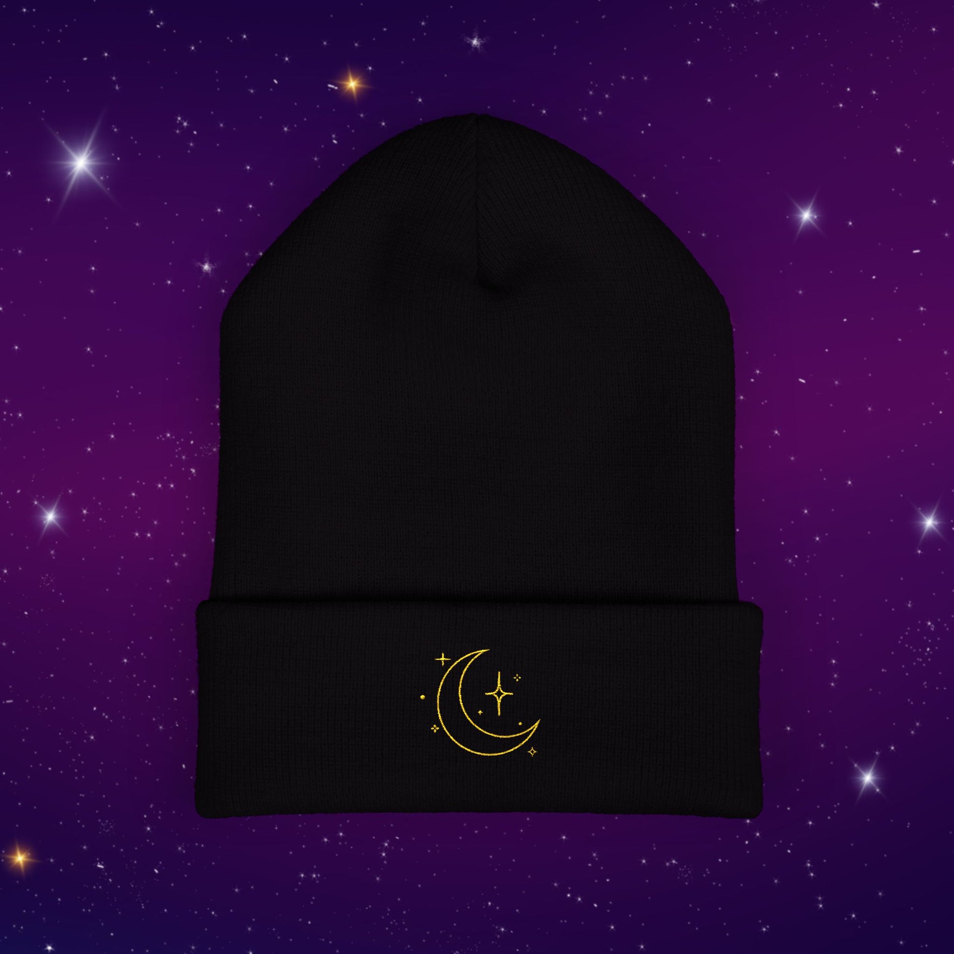 After Dark Logo Knit Cuffed Beanie - Embroidered Crescent Moon & Stars