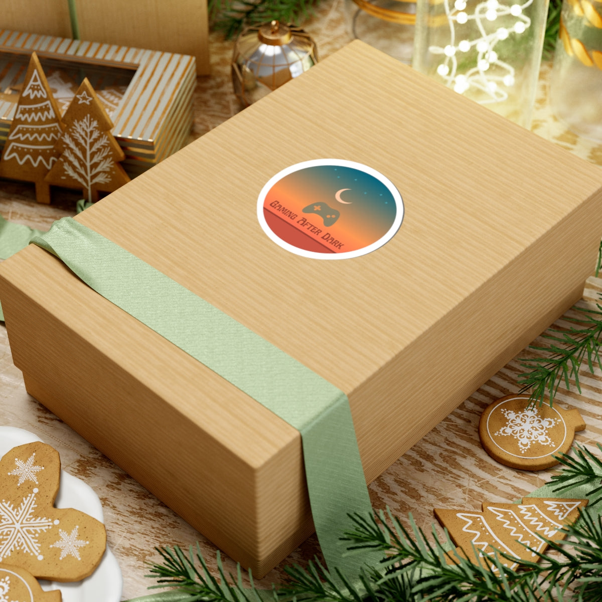 Late-night sessions, low light, high focus. This glossy kiss-cut sticker captures the hush of evening gaming: a crescent moon, a retro controller silhouette, and a sunset-to-twilight gradient that reads warm and calm. Stick it on your laptop, controller case, or journal to mark those focused, cozy hours when everything else fades and the game comes alive. The subtle vintage type and muted palette add personality without shouting — a quiet nod to fellow night-shift players and anyone who prefers controllers over caffeine at midnight.