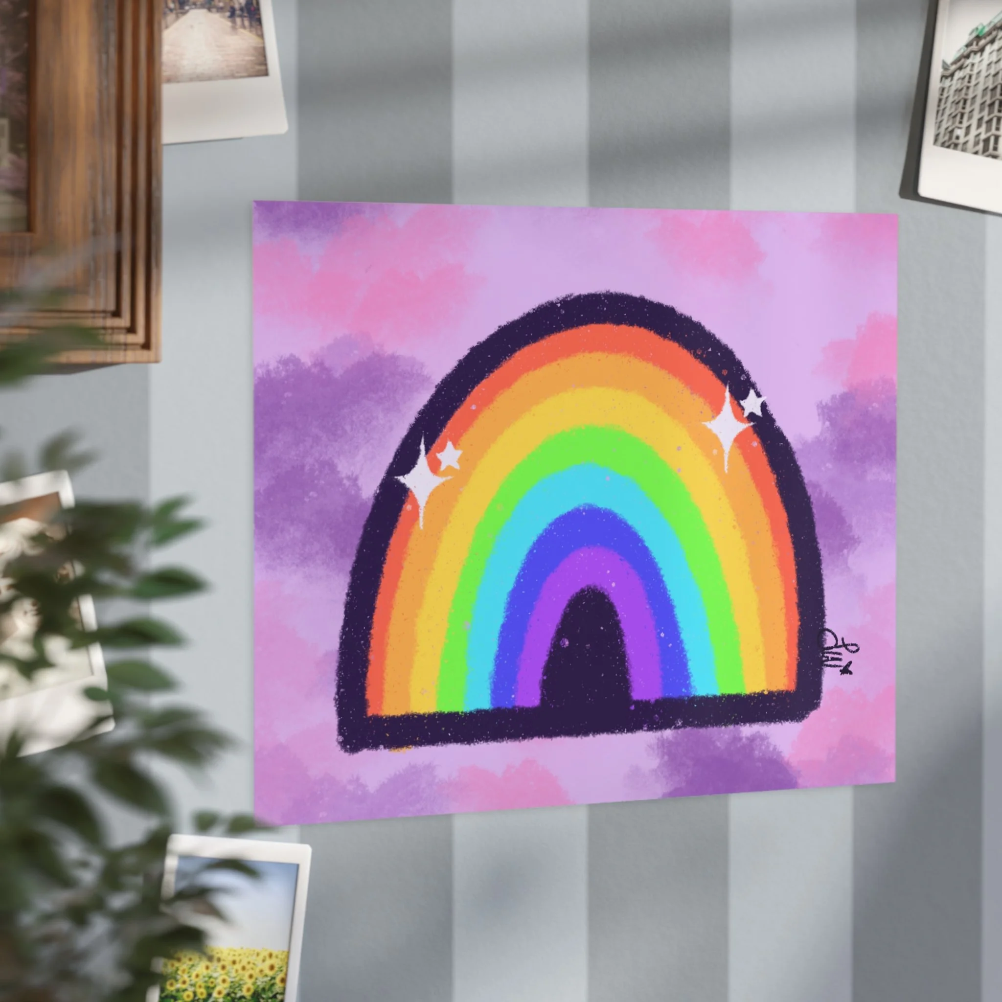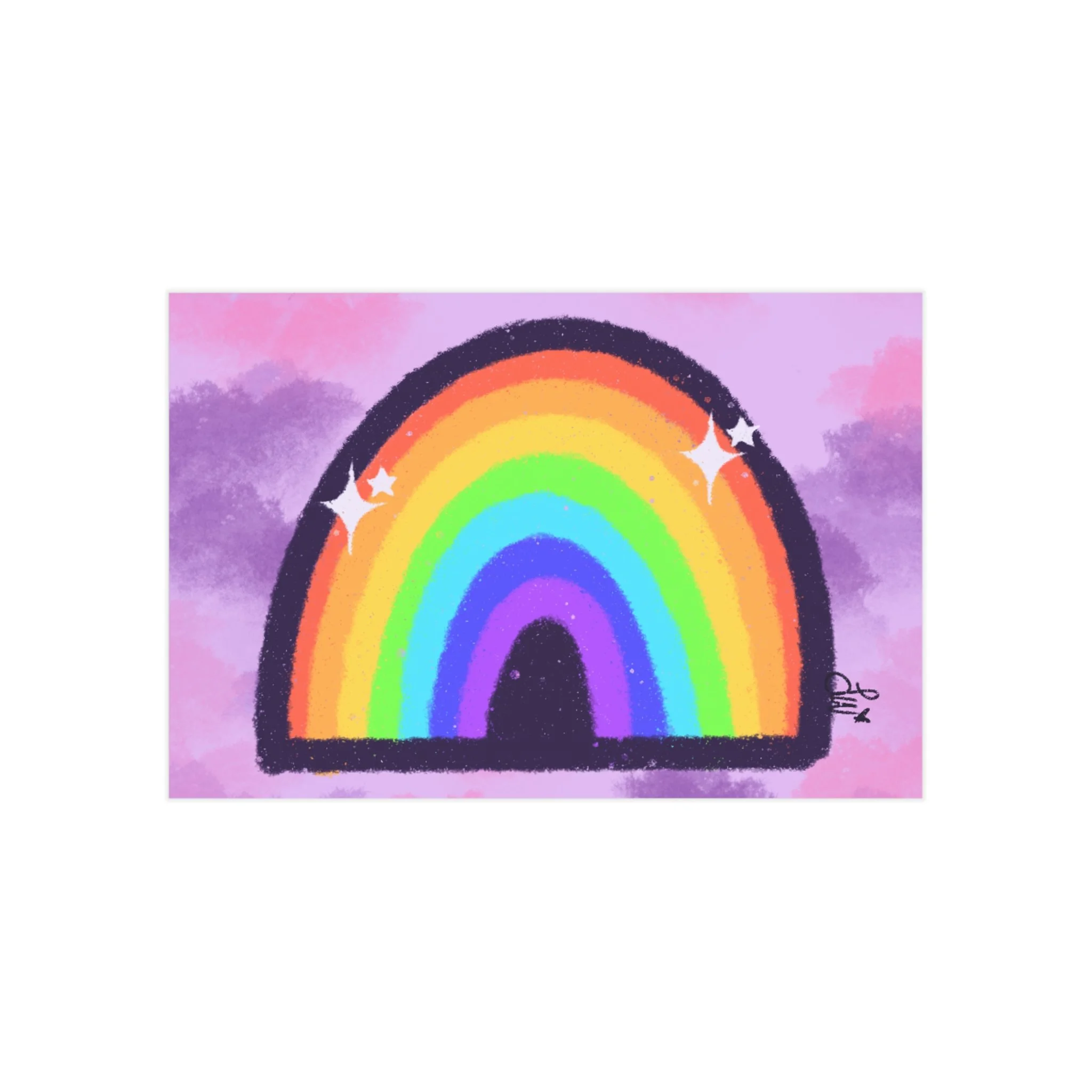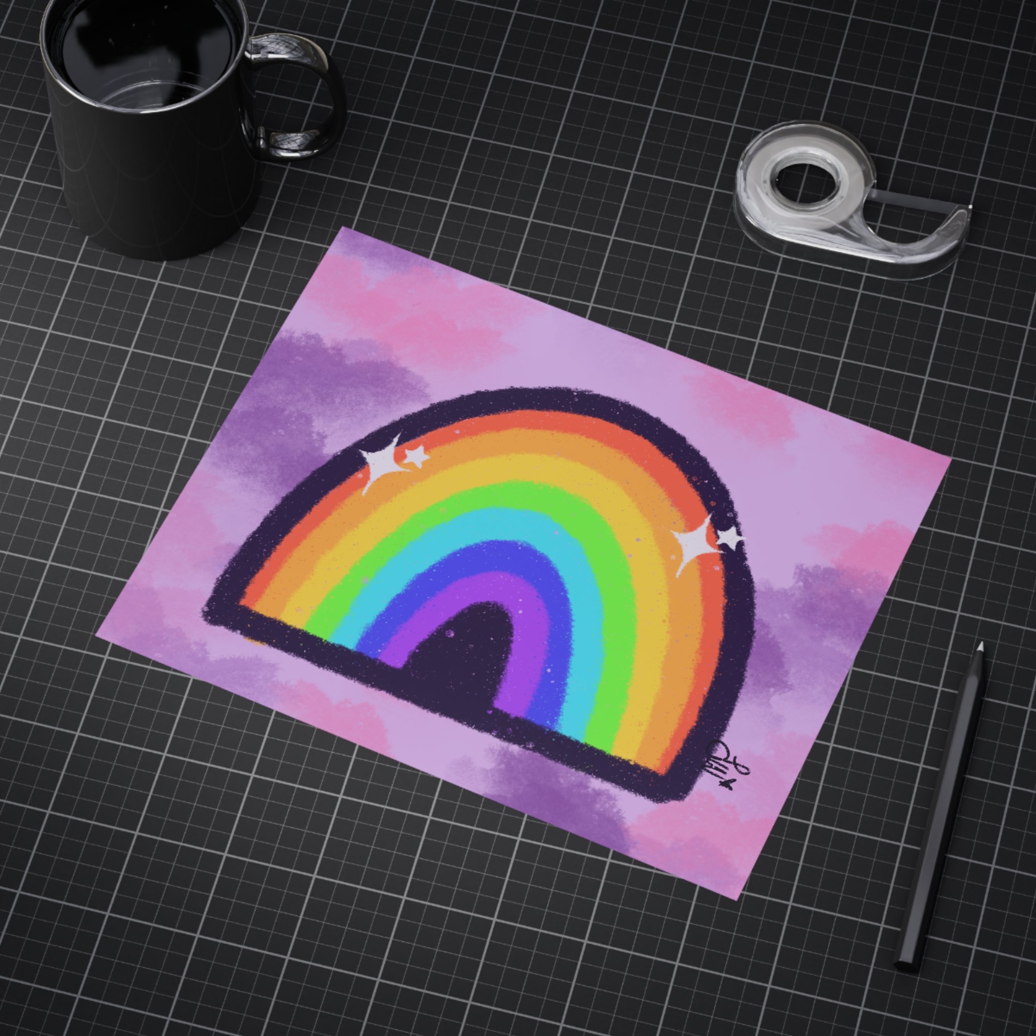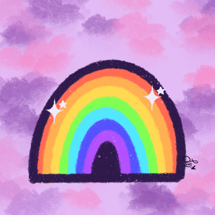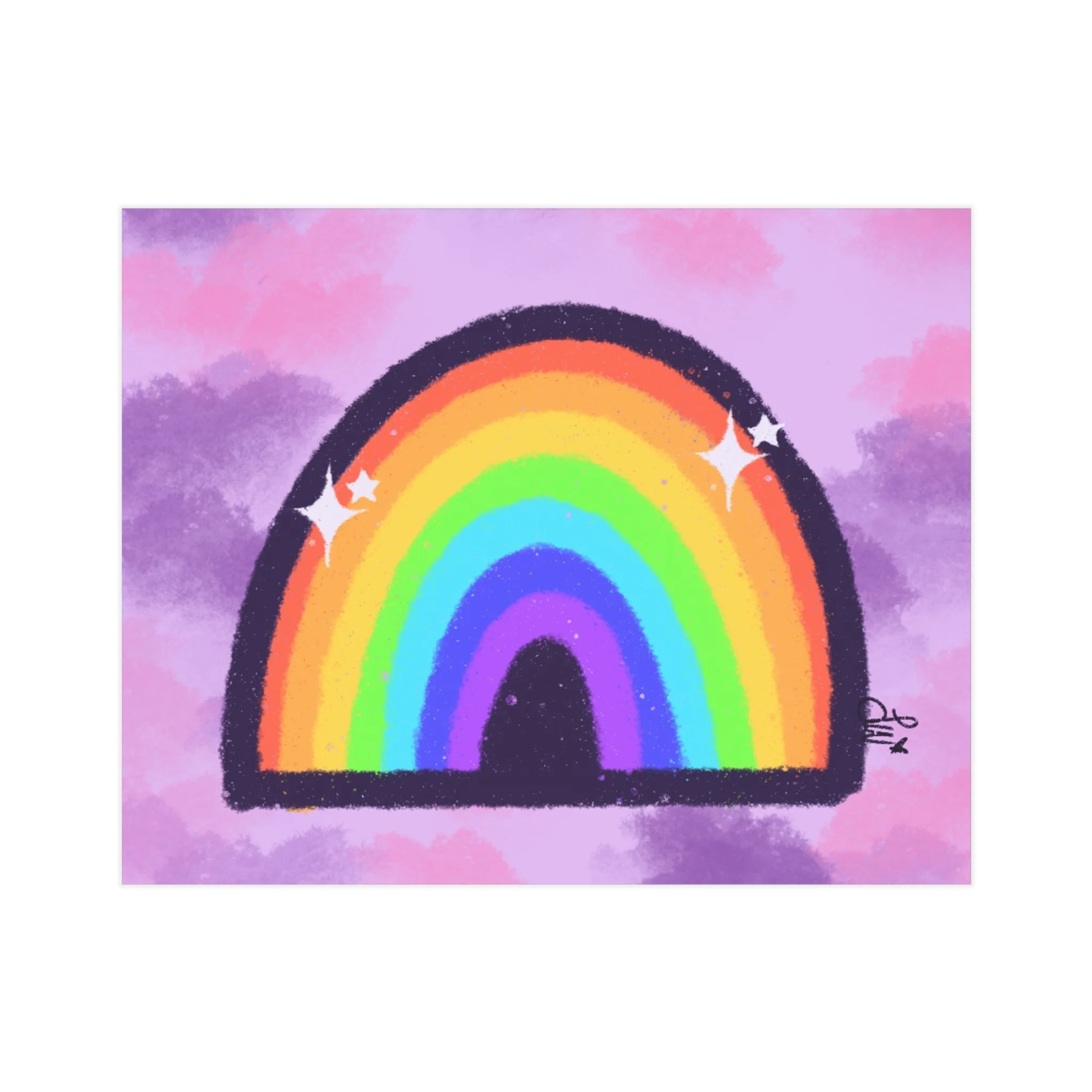 Inspired by Hopecore, this sparkly, colorful rainbow with a purple/pink clouded background makes me smile everytime I look at it!