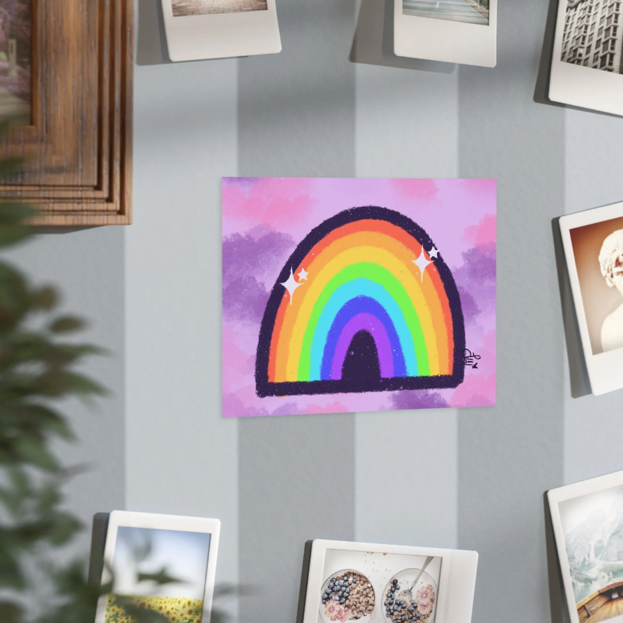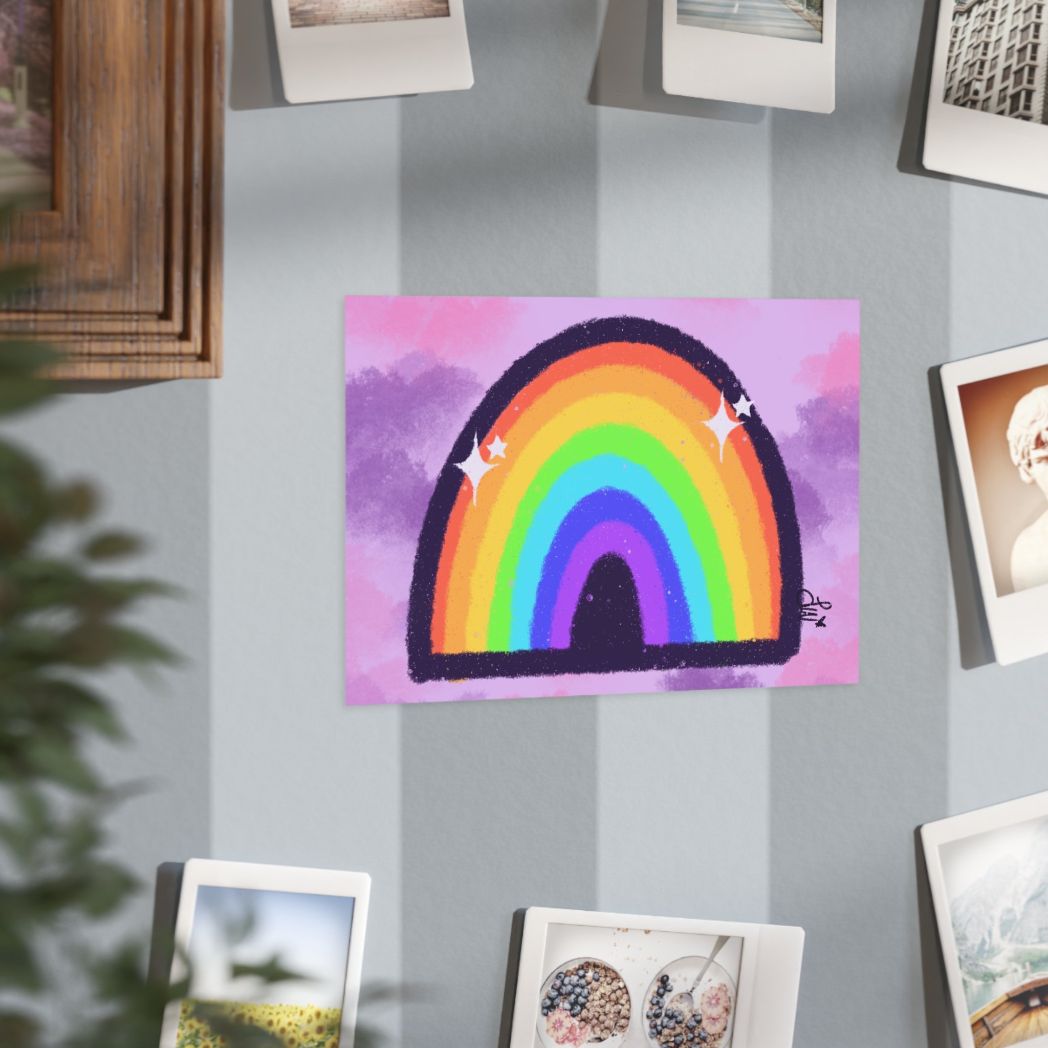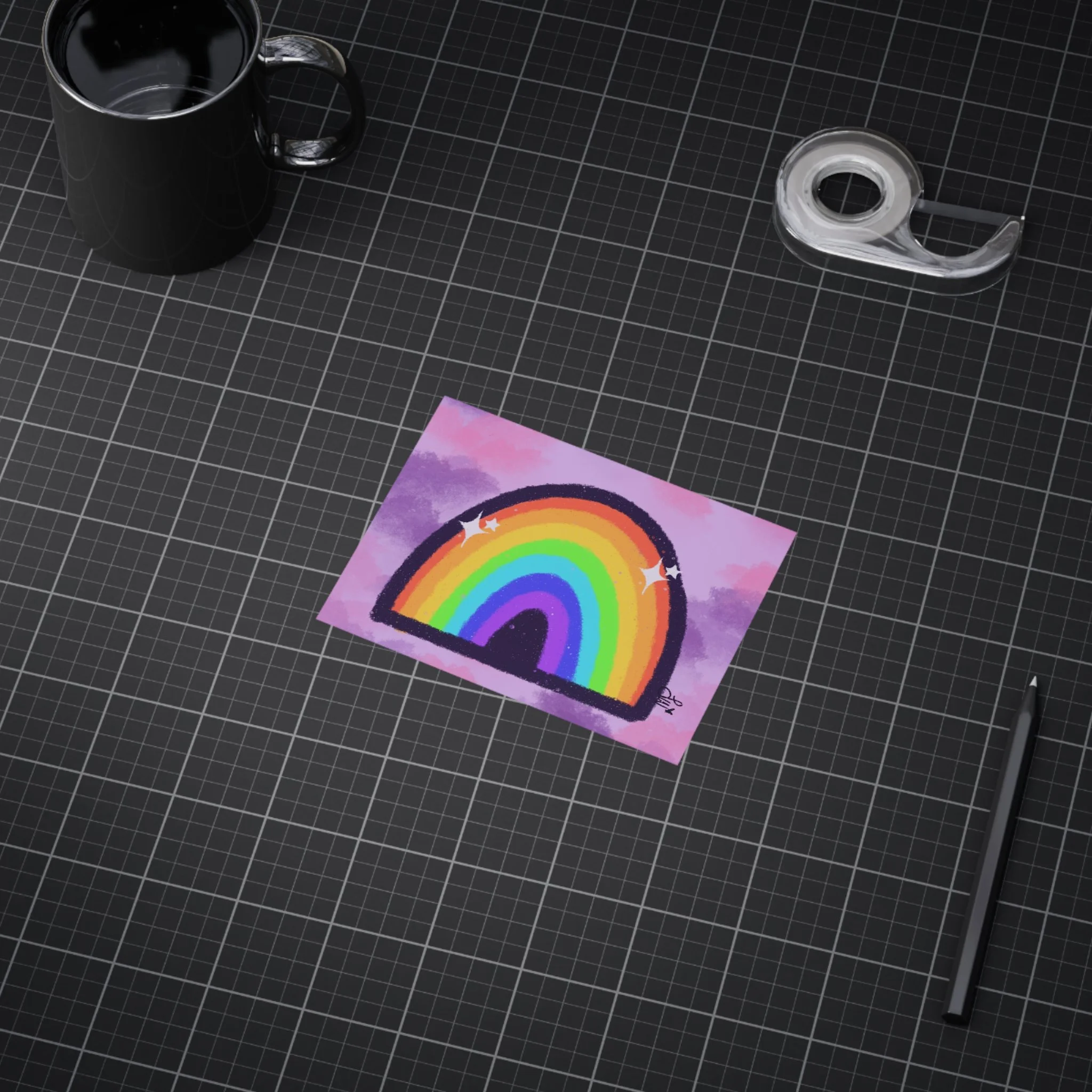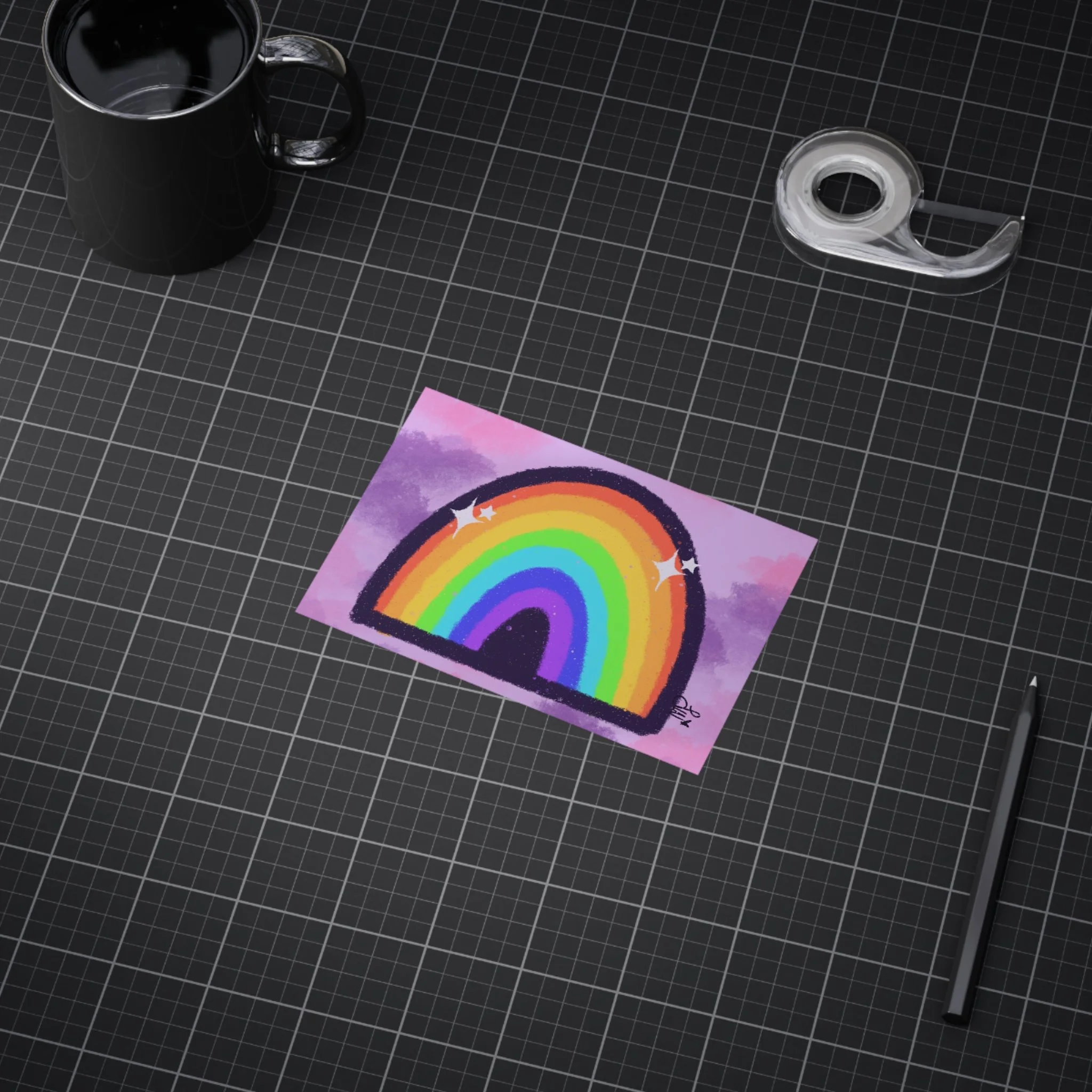Inspired by Hopecore, this sparkly, colorful rainbow with a purple/pink clouded background makes me smile everytime I look at it!